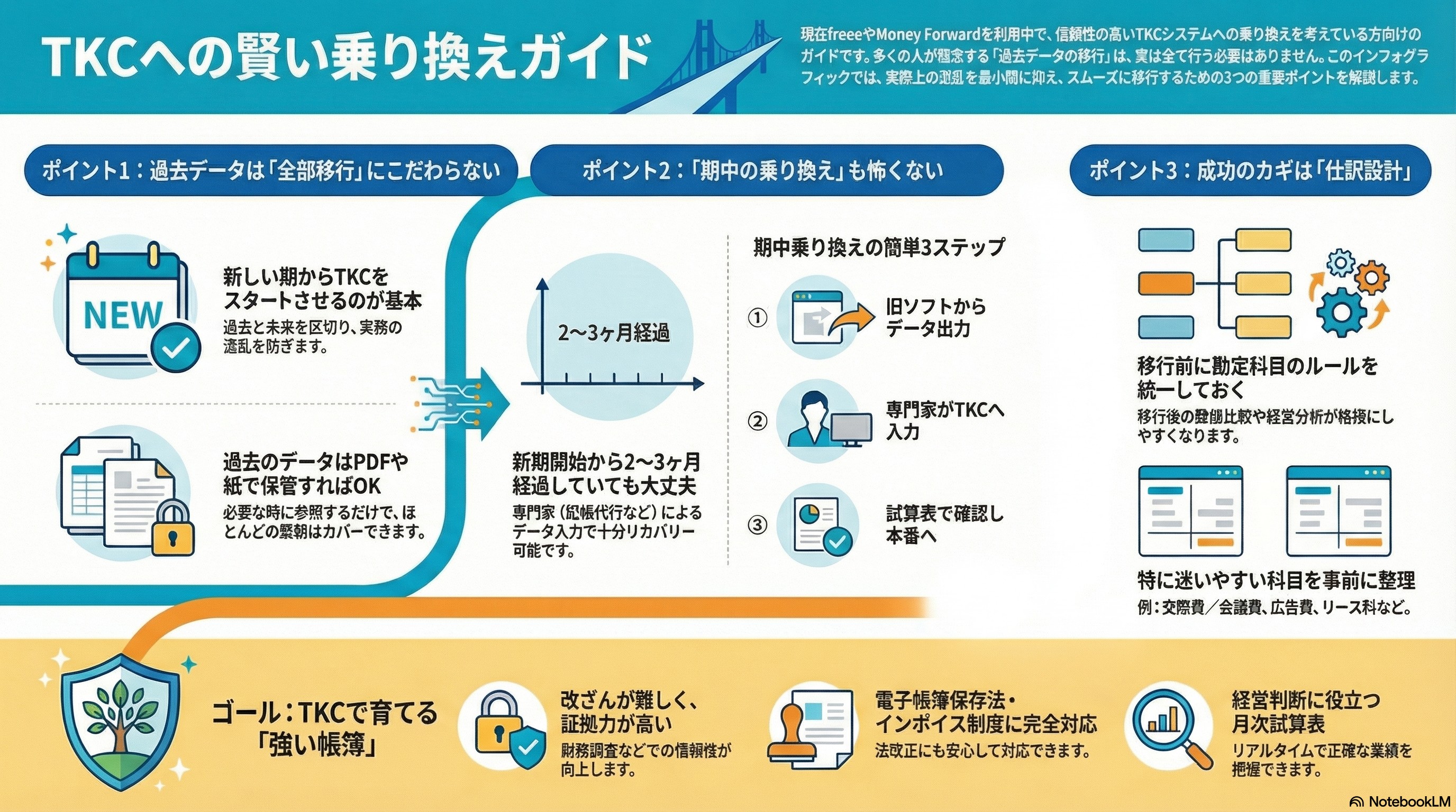 「どこまでを現行ソフトで集計し、どこからをTKCにするか」をはっきり決めておけば、月次の比較も迷わず行えます。